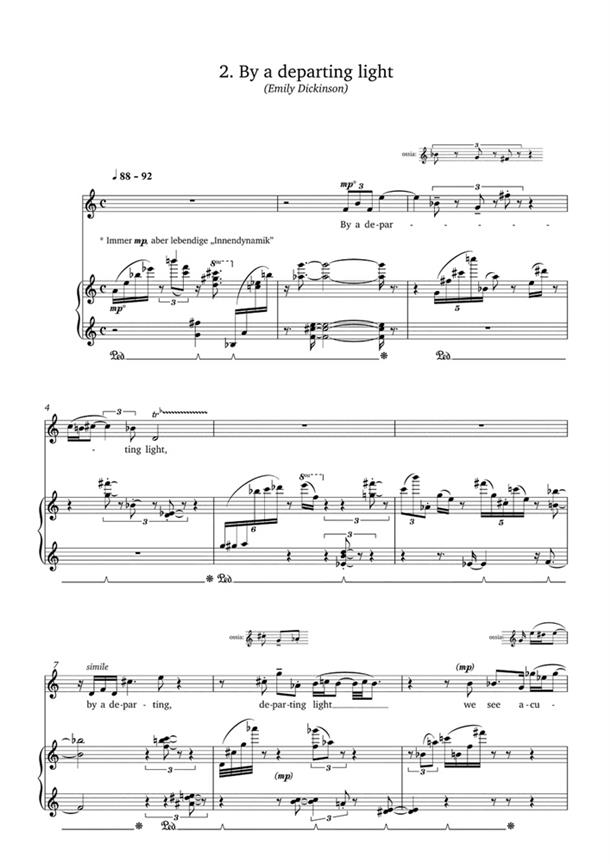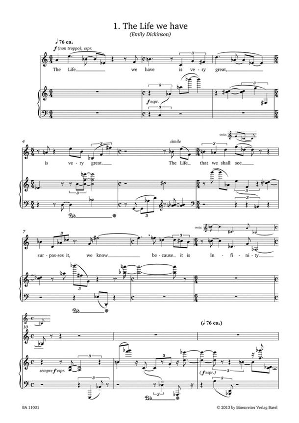 The composer Rudolf Kelterborn about his work: "I call the ten compositions for female voice and piano 'DUOS' because the voice and instrument parts are treated musically with absolute equality and indeed often go their own independent ways. In the vocal part there are several variants, and this makes them accessible for different types of voice. The 10 duos do not form a complete cycle that can be heard only as an entire work. Smaller groups can be put together and presented according to text-related or musical aspects. The texts are by authors who have continued to inspire me for years.”