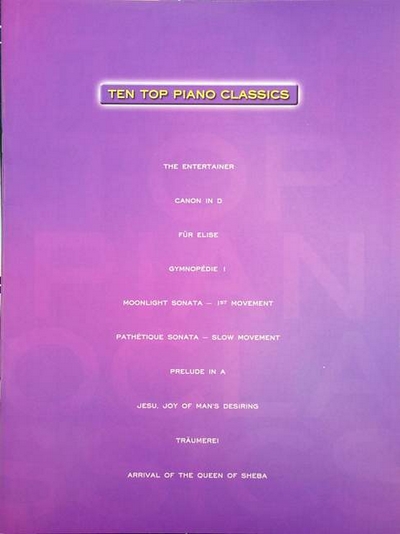 Händel: Arrival of the Queen of Sheba Pachelbel: Canon in D Beethoven: Für Elise Satie: Gymnopédie I Bach: Jesu, joy of man’s desiring Beethoven: First movement from Moonlight Sonata Op. 27 #2 Slow movement from Pathétique Sonata Op. 13 Chopin: Prelude in A Joplin: The Entertainer Schumann: Träumerei