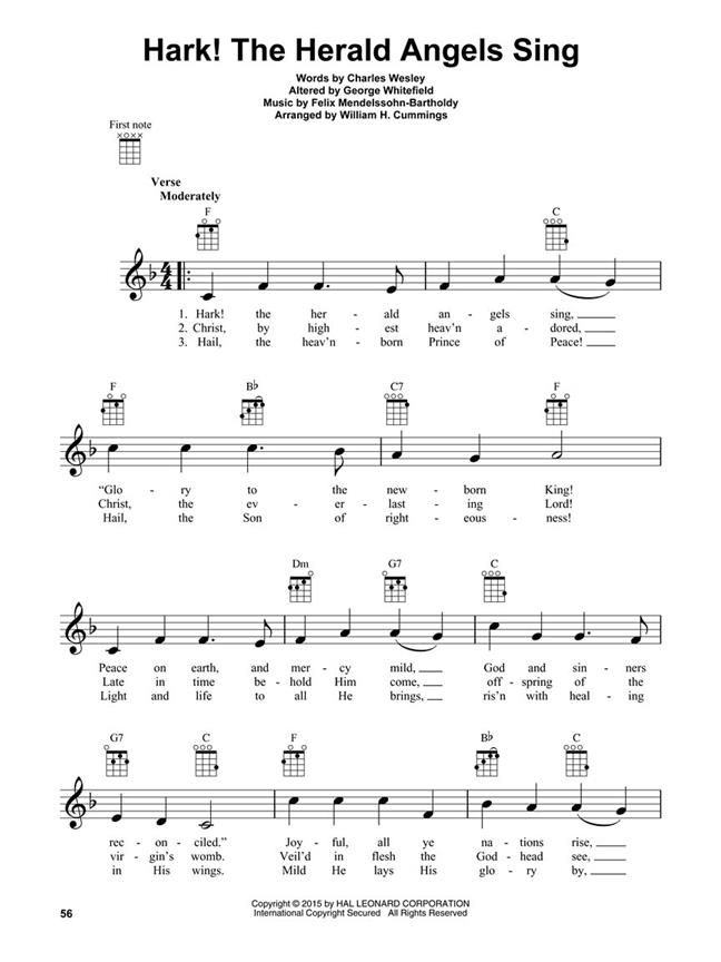 Take the uke along when you go Christmas caroling this year! This massive collection includes 100 of your favorite carols: Angels We Have Heard on High - Away in a Manger - The Boar's Head Carol - Coventry Carol - Deck the Hall - The First Noel - Go, Tell It on the Mountain - The Holly and the Ivy - I Heard the Bells on Christmas Day - It Came upon the Midnight Clear - Joy to the World - Masters in This Hall - O Little Town of Bethlehem - Pat-A-Pan - Rise Up, Shepherd, and Follow - Silent Night - The Twelve Days of Christmas - What Child Is This? - and more.