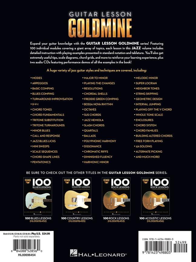 Développez vos connaissances de la guitare avec la série Goldmine Leçon de guitare! Avec 100 modules individuels couvrant un éventail géant de sujets, chaque leçon dans ce volume de Jazz comprend des instructions détaillées avec la lecture des exemples présentés en notation standard et tablature. Vous aurez également des conseils extrêmement utiles, schémas à l'échelle, les grilles d'accords, photos et plus encore pour renforcer votre expérience d'apprentissage, plus 2 CD audio entièrement équipé avec des démos de rendement de tous les exemples dans le livre!