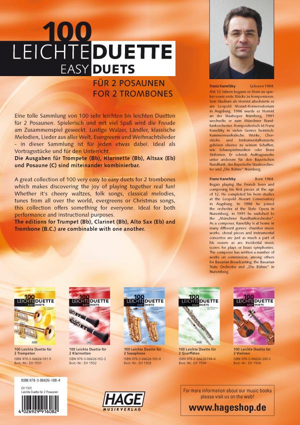 100 Leuchte Duette Für 2 Posaunen KANEFZKY FRANZ