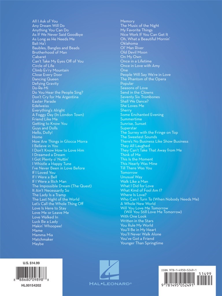 Instrumentalists will love this collection of Broadway classics, including: Any Dream Will Do - Cabaret - Defying Gravity - Do You Hear the People Sing? - Edelweiss - Getting to Know You - Guys and Dolls - Hello, Dolly! - I Dreamed a Dream - If I Were a Bell - Luck Be a Lady - Mame - The Music of the Night - Ol' Man River - People Will Say We're in Love - Seasons of Love - Send in the Clowns - The Surrey with the Fringe on Top - Think of Me - Tomorrow - What I Did for Love - You'll Never Walk Alone - and many more.