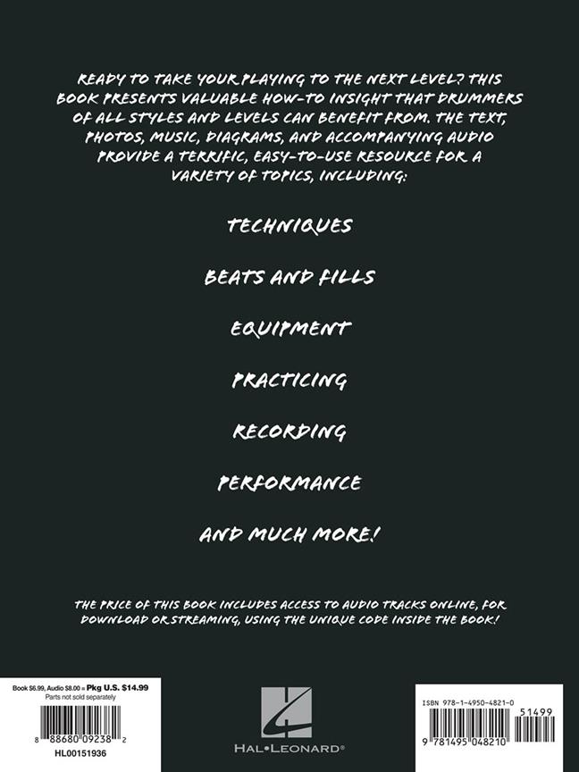 Ready to take your playing to the next level? This book presents valuable how-to insight that drummers of all styles and levels can benefit from. The text, photos, music, diagrams, and accompanying audio provide a terrific, easy-to-use resource for a variety of topics, including: techniques · beats and fills · practicing · recording · performance · and much more! Ready to take your playing to the next level? This book presents valuable how-to insights that drummers of all styles and levels can benefit from. The text, photos, music, diagrams, and accompanying audio provide a terrific, easy-to-use resource for a variety of topics, including: techniques, beats and fills, practicing, recording, performance and much more!