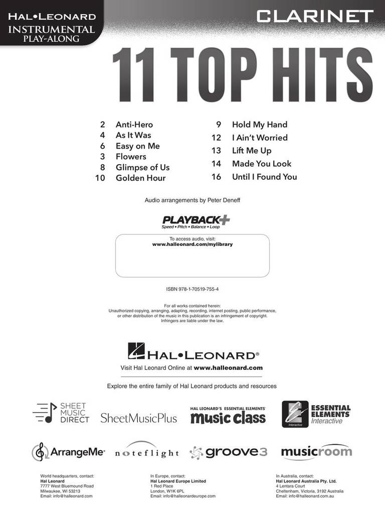 11 Top Hits for Clarinet