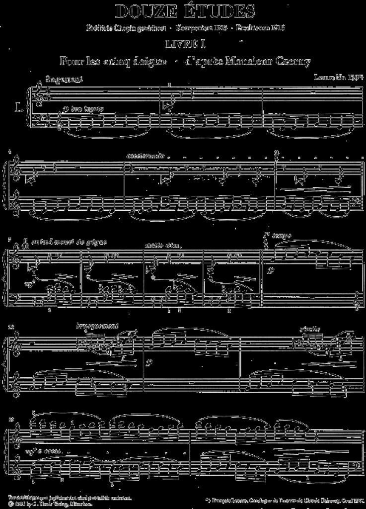 Tout comme d’autres chefs-d’oeuvre tardifs, Debussy composa ce cycle durant l’été de l’année de guerre 1915. Il s’était retiré avec sa famille dans une maison de campagne près de Dieppe et composa avec la plus grande concentration. Le compositeur, très critique envers lui-même, était particulièrement fier de ses Études: «J’avoue être content d’avoir mené à bien une oeuvre qui, sans fausse vanité, aura une place particulière. En deçà de la technique, ces Études prépareront les pianistes utilement à mieux comprendre qu’il ne faut pas entrer dans la musique qu’avec des mains redoutables. » Les études de Debussy sont un passage obligé si l’on veut embrasser une carrière deconcertiste.
