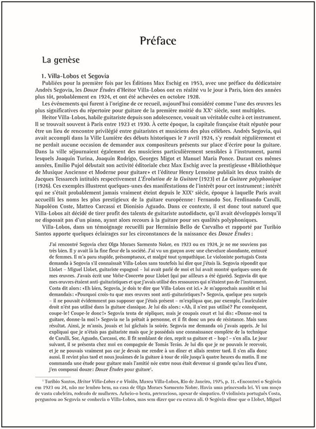 Les Douze Études montrent toute la richesse polyédrique des multiples influences culturelles de Villa-Lobos, qui s’étend de la musique de Bach au lyrisme romantique de Chopin, en passant par la musique traditionnelle brésilienne, présente aussi bien dans sa forme urbaine que dans ses ascendances africaines et amazoniennes pour les dernières études. La présente édition critique des Douze Études, éditée par Frédéric Zigante, offre une restitution plus ponctuelle des intentions du compositeur, notamment en matière de doigtés, ainsi qu’une mise à jour des sources.