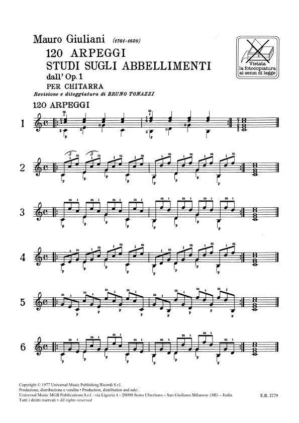 120 Arpeggi Studi Sugli Abbellimenti Dall’Op.1 GIULIANI MAURO