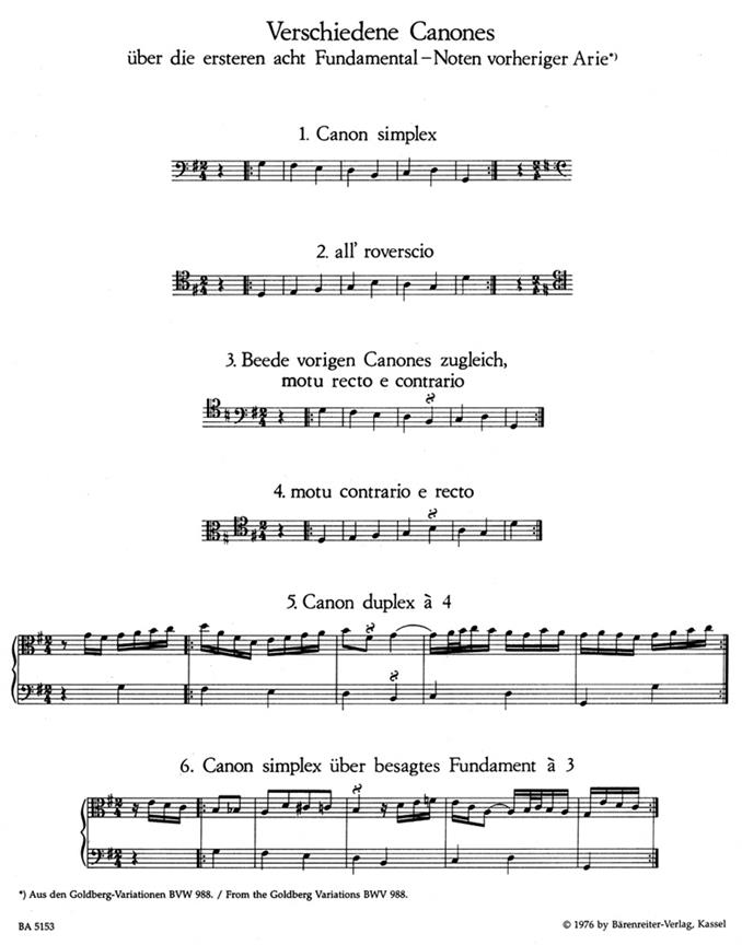 14 Kanons Über Die Ersten Acht Fundamentalnoten Der Aria Aus Den’Goldberg-Variationen’ BACH JOHANN SEBASTIAN