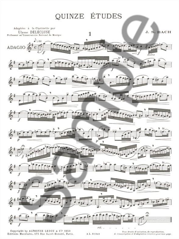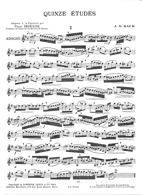 Les Quinze etudes ont été adaptées par Ulysse Delecluse (1907-1995) à partir de l’ensemble de six œuvres Sonates et Partitas pour violon, initialement écrites par J. S. Bach (1685-1750) en 1720. Commencée en 1703 et achevée seulement en 1720, elle alterne entre trois sonates en quatre mouvements et trois partitas. Dans cette composition baroque, chaque sonate possède une structure en quatre mouvements composée d’un prélude, d’une fugue et d’un tempo plus binaire pour les troisième et quatrième voix. Les partitas, avec une structure proche de la gigue, étaient légèrement plus variées en raison de l’introduction de différents éléments. Cette transcription pour clarinette, produite en 1953 par Ulysse Delecluse, clarinettiste et professeur français, facilite l’accès à ce répertoire pour les clarinettistes.