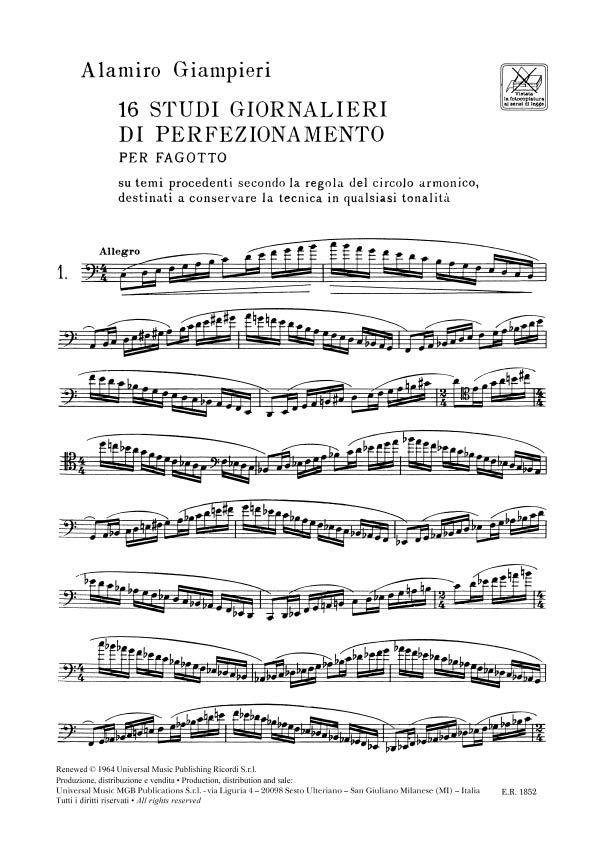 Sixteen daily studies by Alamiro Giampieri for the perfection of the Bassoon.