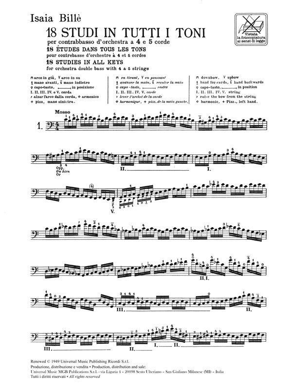 18 Studi In Tutti I Toni Per Cb. D Orch. A 4 E 5 Corde BILLE I.