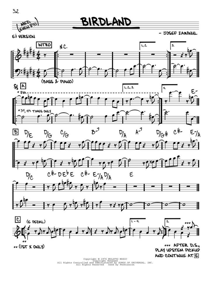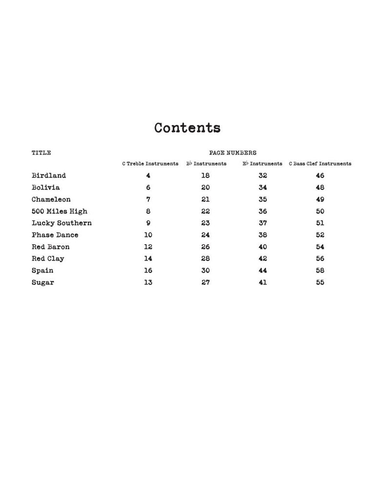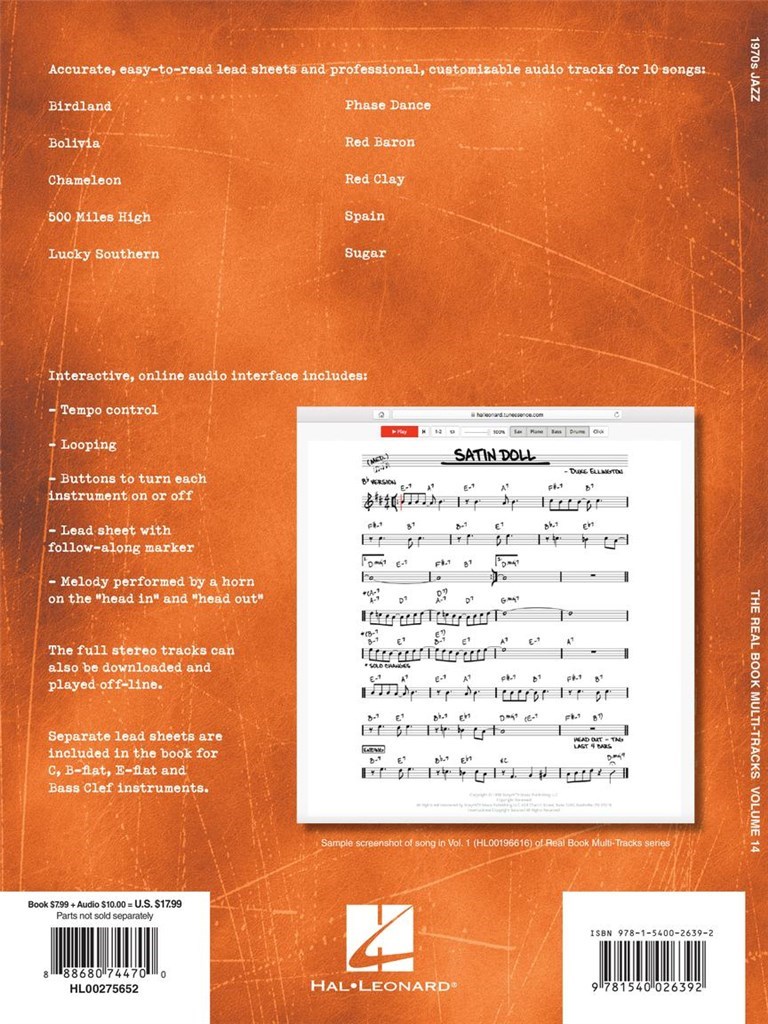 Today's best way to practice jazz! Accurate, easy-to-read lead sheets and professional, customizable audio tracks accessed online for 10 songs. The interactive, online audio interface includes: tempo control: looping: buttons to turn each instrument on or off: lead sheet with follow-along marker: and melody performed by a saxophone or trumpet on the head in and head out. The full stereo tracks can also be downloaded and played off-line. Separate lead sheets are included for C, B-flat, E-flat and Bass Clef instruments. This volume includes 10 songs: Birdland · Bolivia · Chameleon · 500 Miles High · Lucky Southern · Phase Dance · Red Baron · Red Clay · Spain · Sugar.