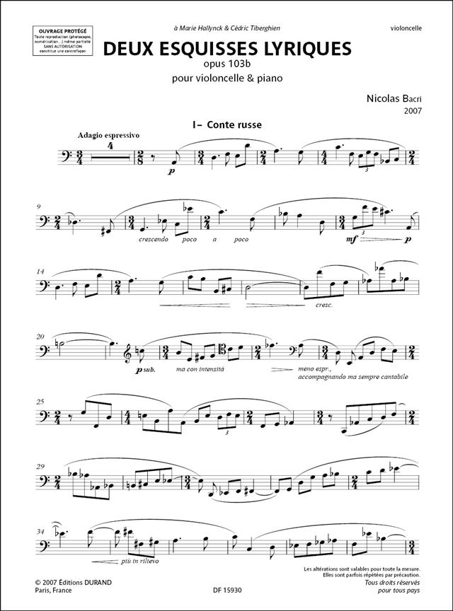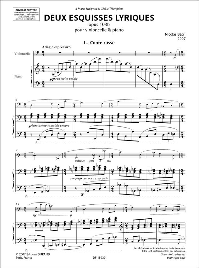 2 Esquisses Lyriques Op. 103 BACRI NICOLAS