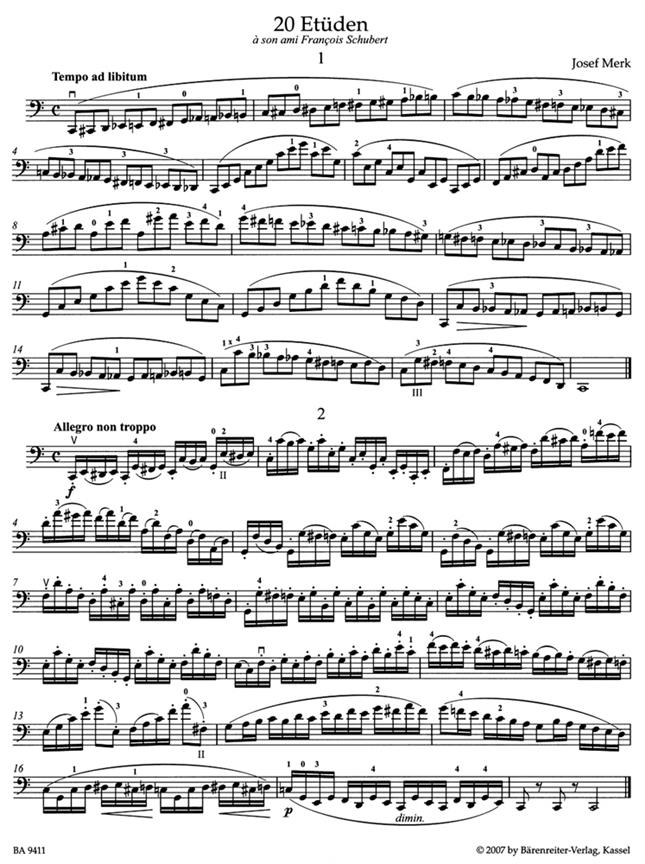 After his succesful publishment of the violoncello-etudes by Popper, Duport, Grützmacher and Lee, Martin Rummel aimed his pedagogic attention onto the famous opus 11 by Josef Merk (1795–1852). Merk was one of the most