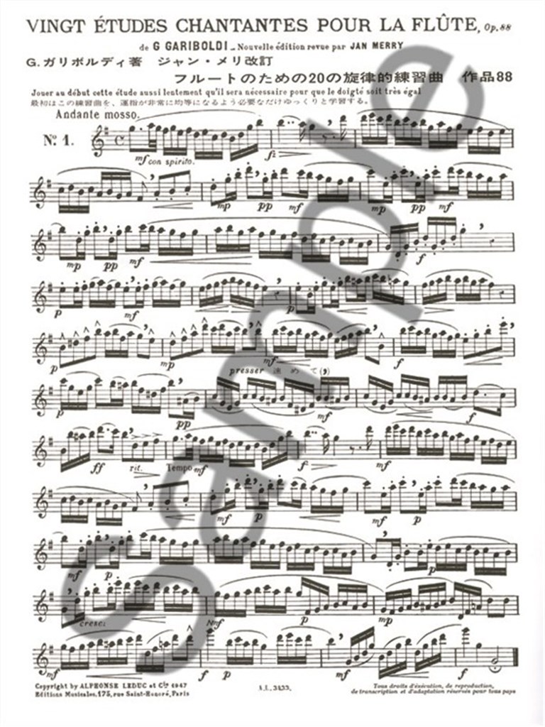 20 Melodic Studies, Op. 88 by Giuseppe Gariboldi is a series of 20 pleasant studies arranged for Flute.