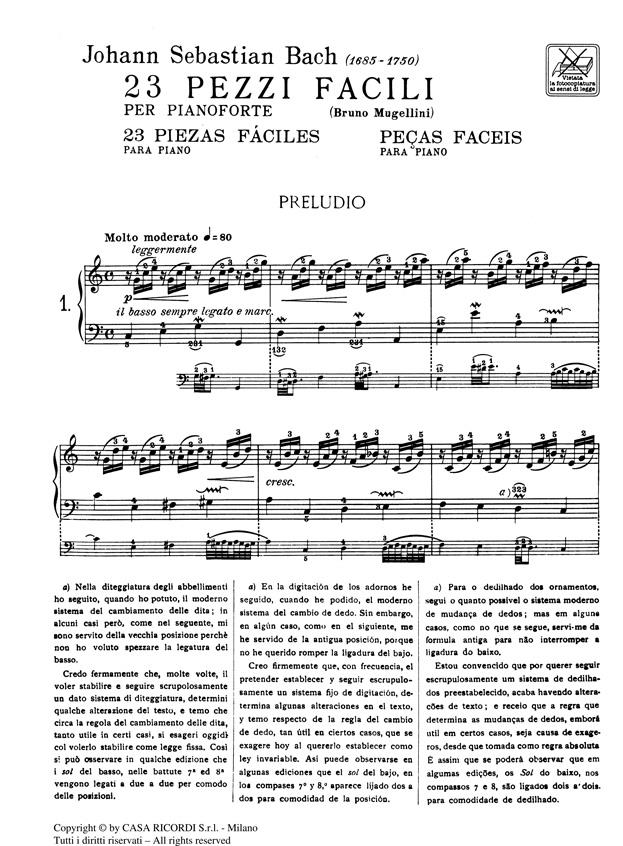 23 Pezzi Facili Per Pianoforte + Cd BACH JOHANN SEBASTIAN