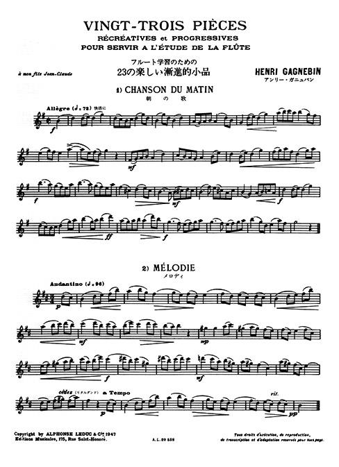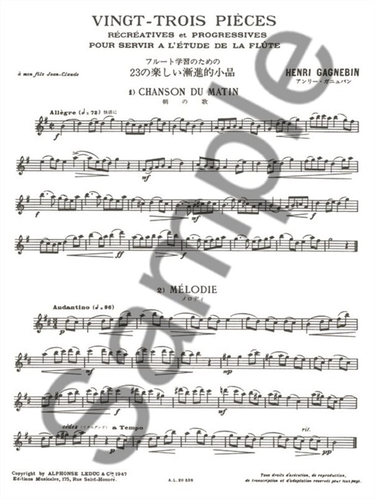 23 Pieces Recreatives Et Progressives Flûte Seule GAGNEBIN HENRI