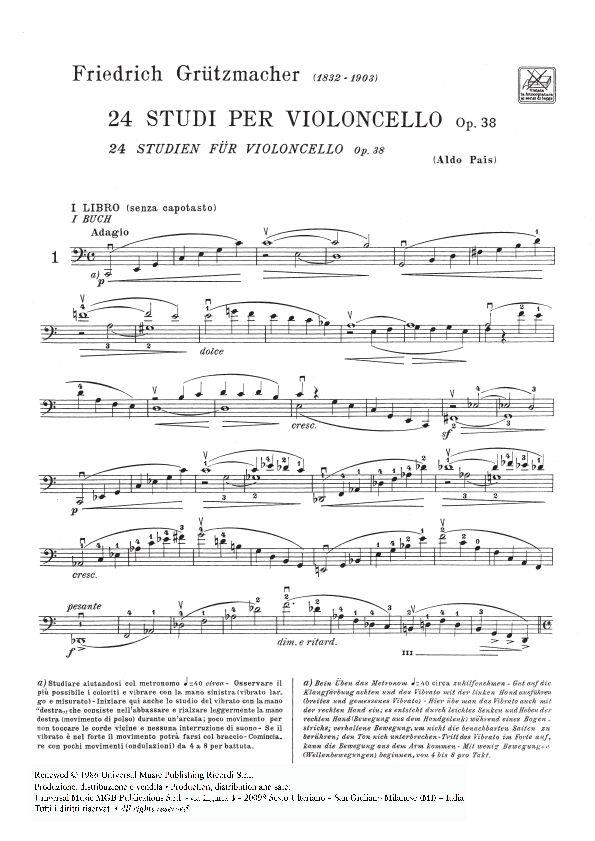 24 Studi Op. 38. Libro I GRUETZMACHER (GRUTZMACHER) FRIEDRICH