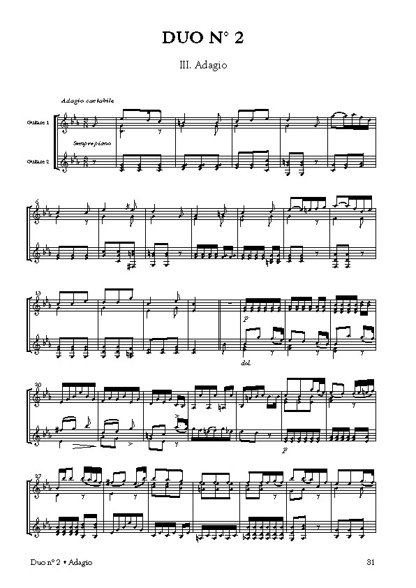 Les trois duos concertants pour deux guitares de l'opus 31, d'une architecture très classique, peuvent être considérés comme les plus aboutis et les plus inspirés des duos écrits par Antoine de Lhoyer. Il sait créer une ambiance captivante : grande inventivité rythmique et mélodique, fugato fébriles, violents appels d'appoggiatures de dominante en double croche, motifs rythmiques répétés et ascensionnels, marches harmoniques habilement menées, modulations'
