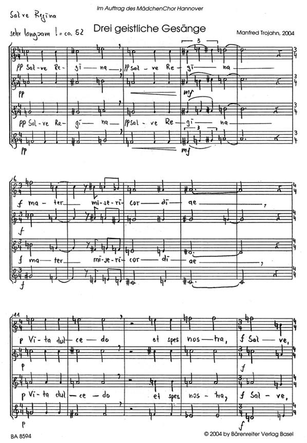 3 Geistliche Gesänge Für Vierstimmigen Frauenchor TROJAHN MANFRED