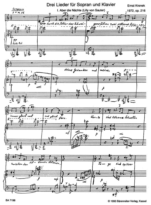 3 Lieder (1972) Für Sopran Und Klavier KRENEK ERNST