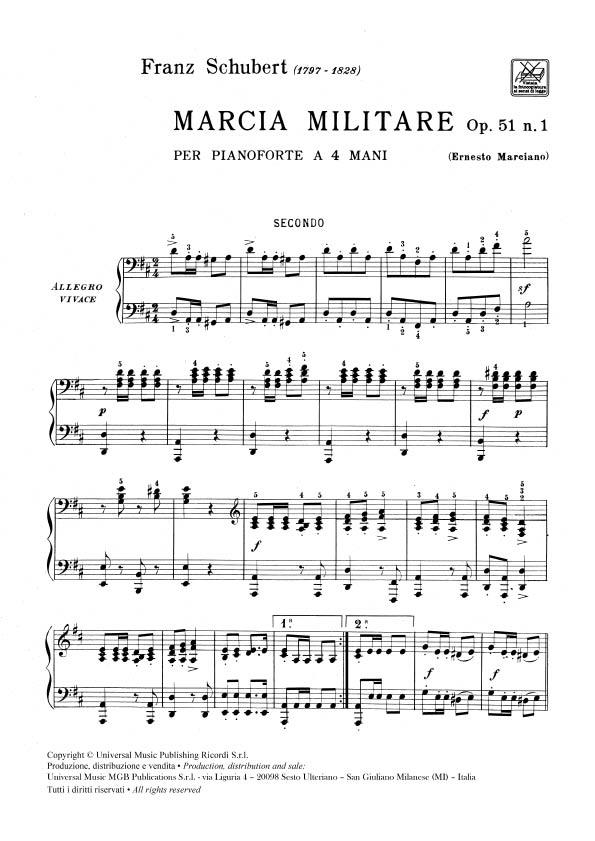 3 Marce Militari Op. 51 D 733: N 1 Per Pianoforte A 4 Mani SCHUBERT FRANZ