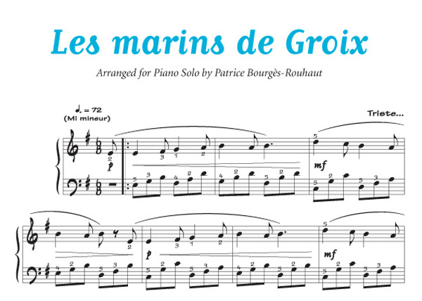 Les trois marins de Groix - (Collection Comptine) Arrangement Piano - 1+ feuillet pour paroles - niveau : Facile