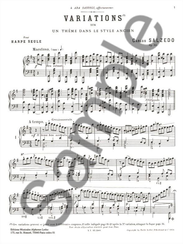 3 Morceaux N03 Variations Sur Theme Style Ancien Op. 30 Harpe SALZEDO CARLOS