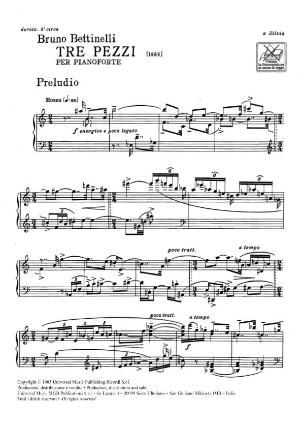 3 Pezzi (Preludio-Notturno-Toccata) (1984) BETTINELLI BRUNO
