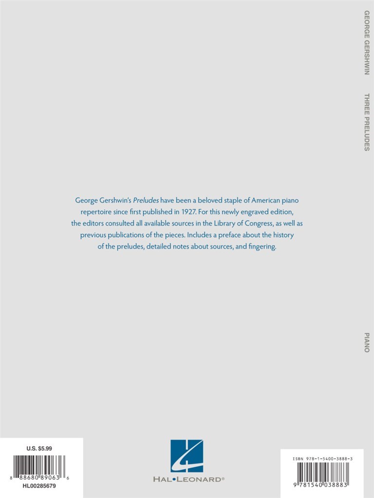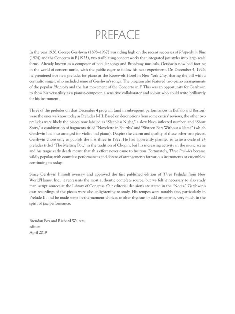 3 Preludes For Piano GERSHWIN GEORGE