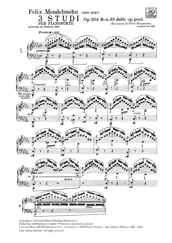 3 Studi Op. 104B N. 33 Dalle Opere Postume MENDELSSOHN-BARTHOLDY FELIX