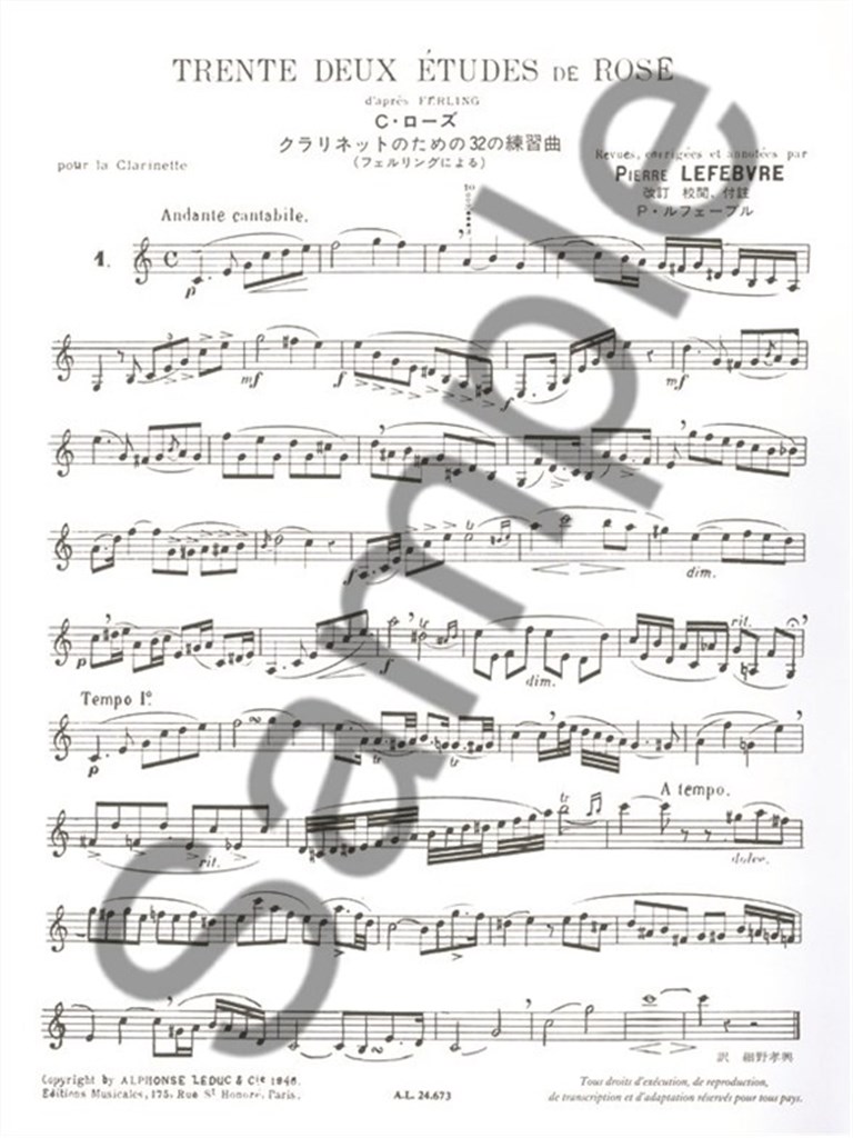Thirty-two Studies by Cyrille Rose, is a set of studies for intermediate and advanced Clarinet players. Famous for their quality, they can also be used for recital. Cyrille Rose (1830-1902) is a French clarinettist, who was the main Clarinet at the Paris Opera and a teacher. He studied under Hyacinthe Klose at the Paris Conservatoire and taught many famous Clarinet players. His set of studies Thirty-two Studies and 'Forty Studies' are recognised worldwide as a classic, trusted method.