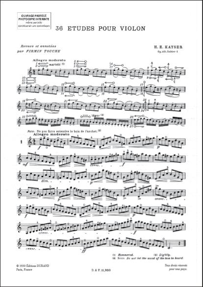36 Etudes Violon 1er Cahier KAYSER HEINRICH ERNST