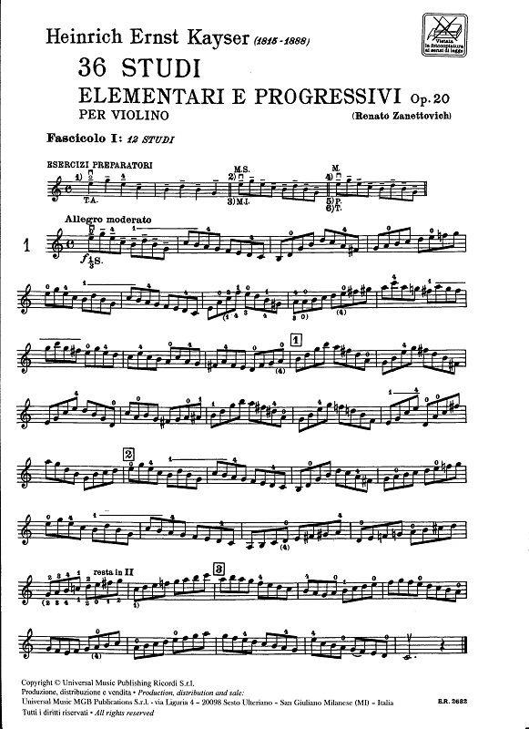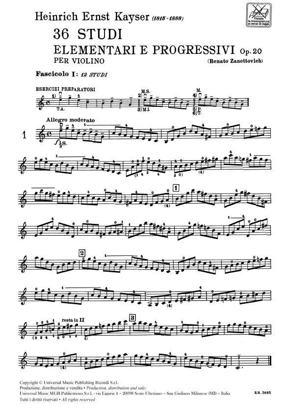 36 Studi Elementari E Progressivi Op. 20 Fasc.I 12 Studi KAYSER HEINRICH ERNST