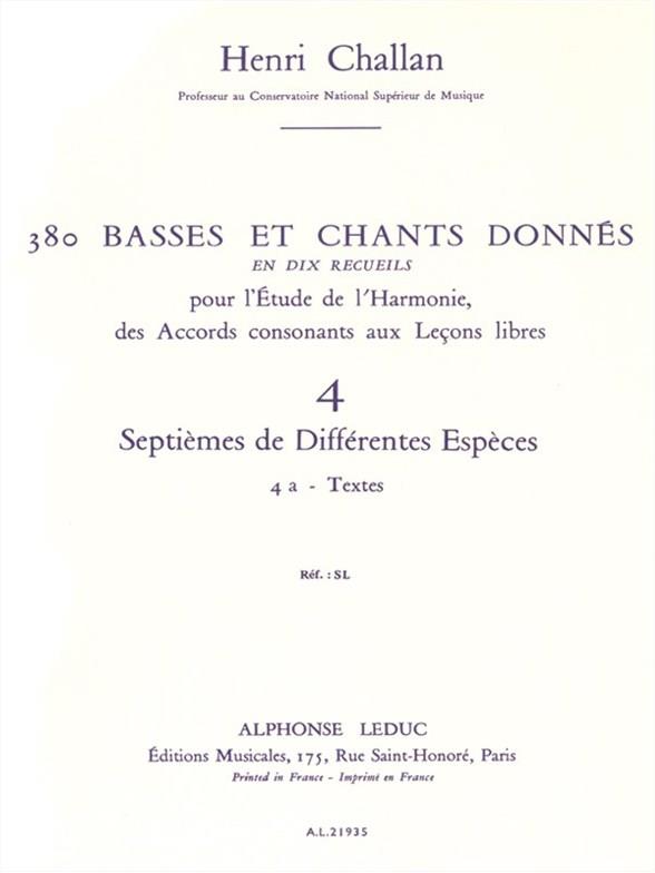 380 Basses Et Chants Donnes Vol.04 : Septiemes Differentes Especes 4A Textes CHALLAN HENRI