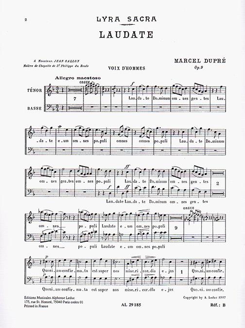 Marcel Dupre 's Laudate Dominum Op. 9 No. 4. Chorus parts for Tenor and Bass.