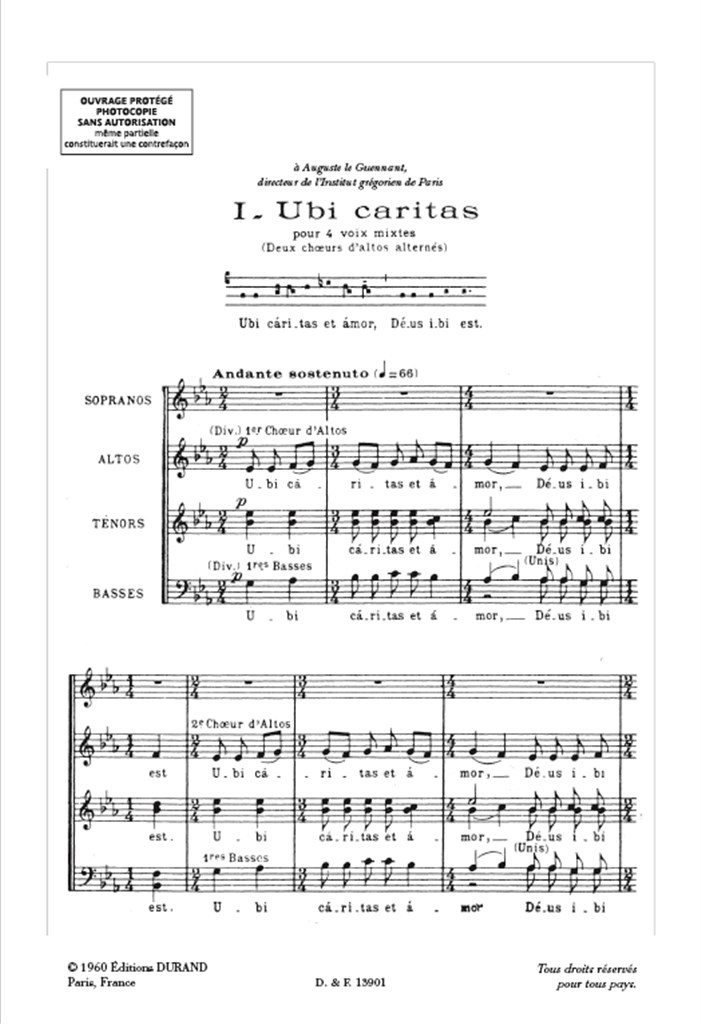 Quatre motets sur un thème grégorien pour chœur mixte non accompagné, par Maurice Durufle.
