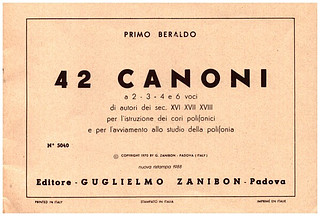 42 Canoni A 2-3-4- E 6 Voci Di Autori Dei Secoli XVI XVII XVIII Per L’Istruzione Dei Cori Polifonici BERALDO P.