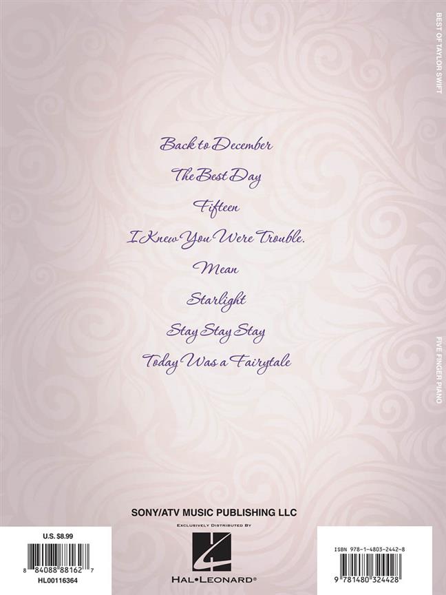 Ce recueil comporte huit chansons fantastiques spécialement choisis et disposés pour les fans de Taylor Swift jeunes.