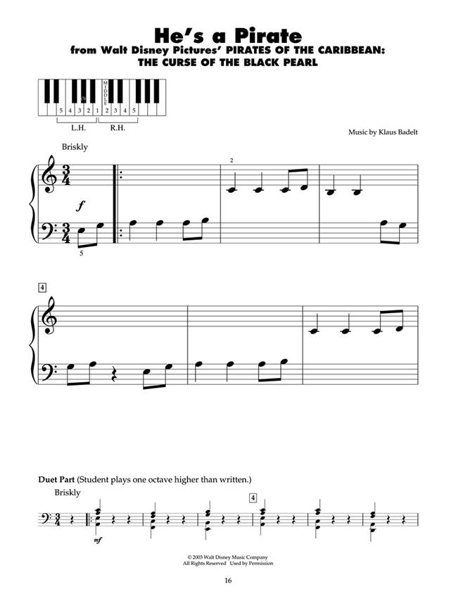 Cinq Finger Piano: Pirates Of The Caribbean propose huit thèmes familiers des films Pirates des Caraïbes que les enfants vont adorer jouer.