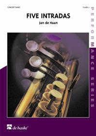 Five Intradas enthält fünf kurze Eröffnungsstücke aus der Feder von Jan de Haan: Intrada, Valerius-Intrada, Intrada „Louis Bourgeois“, Weihnachts-Intrada und Neujahrs-Intrada. Wie die Titel schon andeuten, lassen sich die festlichen Intraden zu vielen verschiedenen (Konzert-) Anlässen einsetzen.
