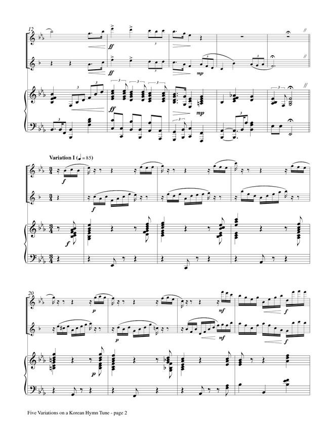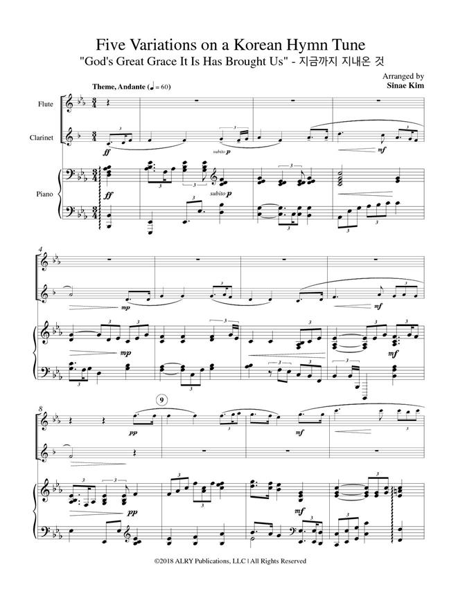 Five Variations on a Korean Hymn Tune, based on "God's Great Grace It Is Has Brought Us" is suitable for both the concert hall and religious settings. The total length of this work is approximately seven minutes, however, the variations can be mixed and matched at the discretion of the performers if a shorter length is needed.