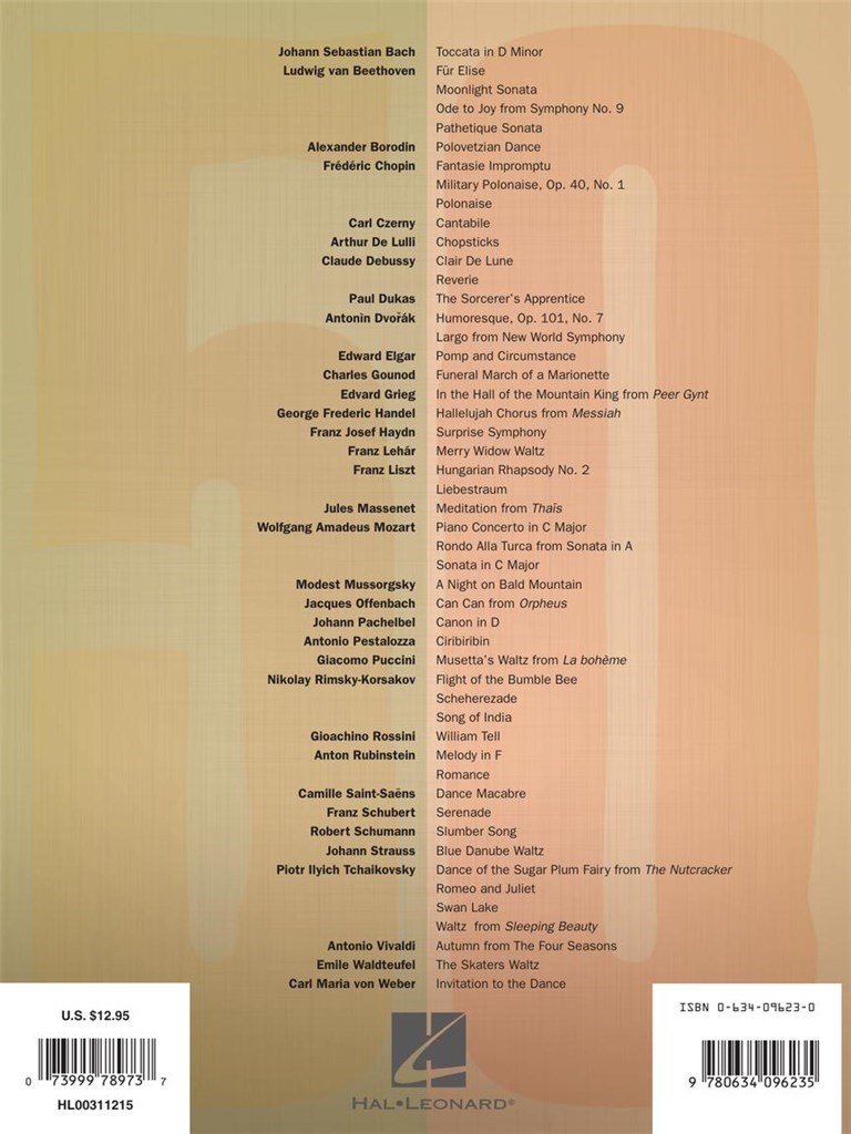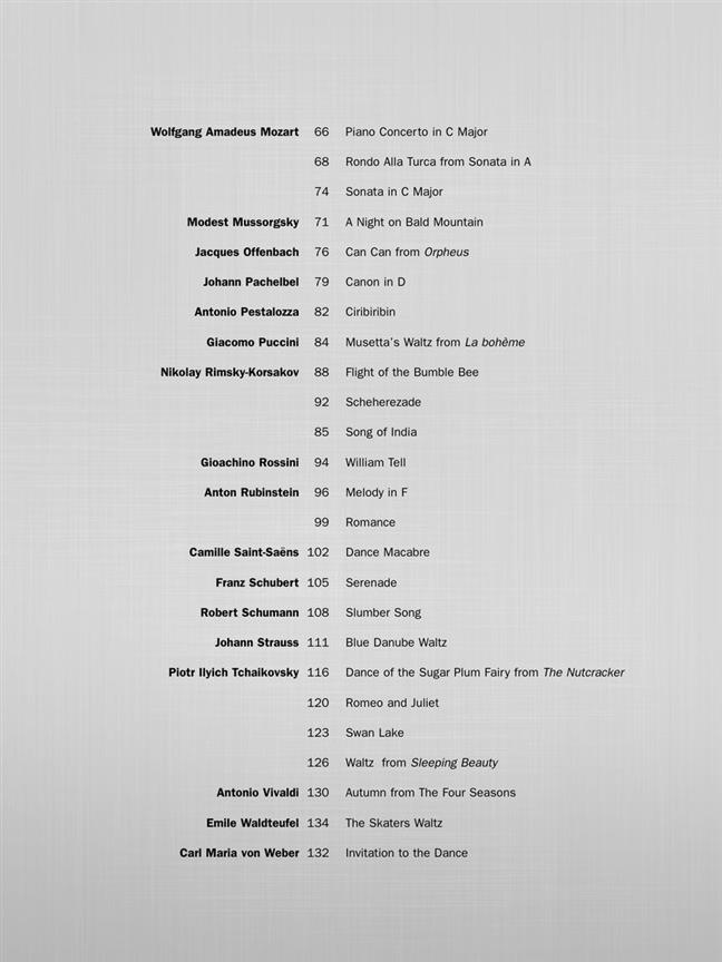 Polonaise (Chopin) Toccata In D Minor (Bach) Military Polonaise, Op.40, #1 (Chopin) Chopsticks (De Lulli) Fantasie Impromptu (Chopin) Hungarian Rhapsody #2 (Liszt) Melody In F (Rubinstein) Merry Widow Waltz (Lehar) Moonlight Sonata (Beethoven) Reverie(Debussy) Sonata In C Major (Mozart) Surprise Symphony (Haydn) William Tell(Rossini) Rondo Alla Turca, From Sonata In A (Mozart) Swan Lake(Tchaikovsky) Largo […]