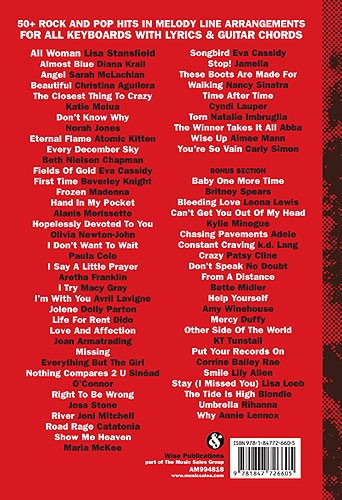 50+ rock and pop hits in melody line arrangements for all Keyboards with lyrics and Guitar chords.