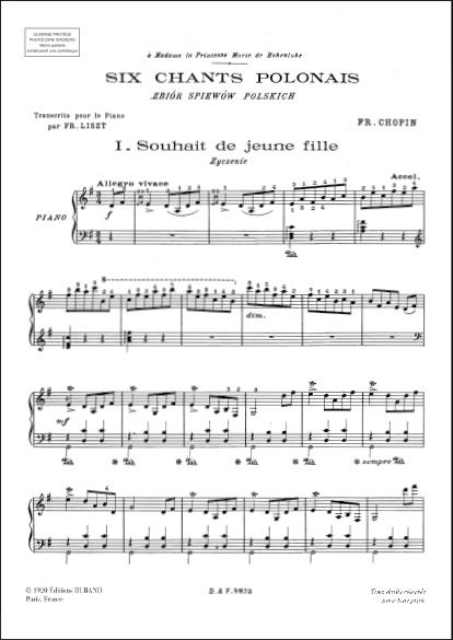 6 Chants Polonais De Chopin Piano CHOPIN FREDERIC