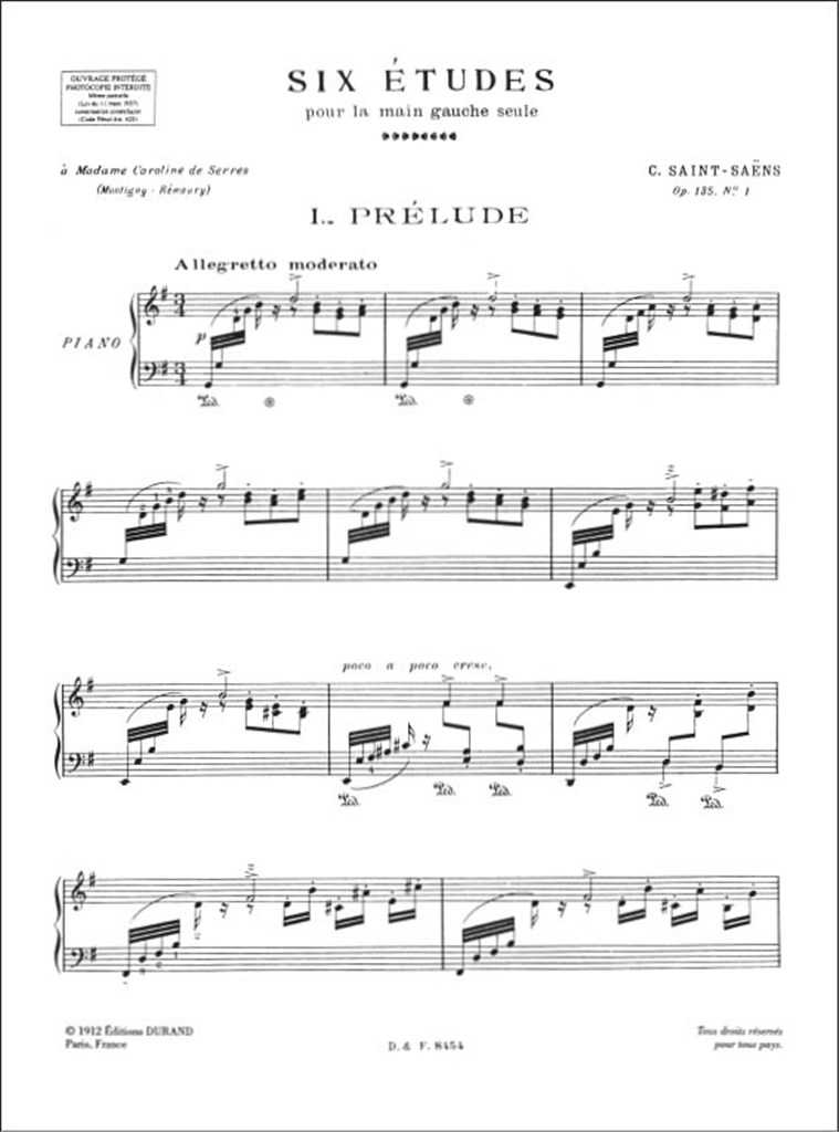 6 Etudes Pour La Main Gauche Seule – Op. Op. 135 Pour Piano SAINT-SAENS CAMILLE