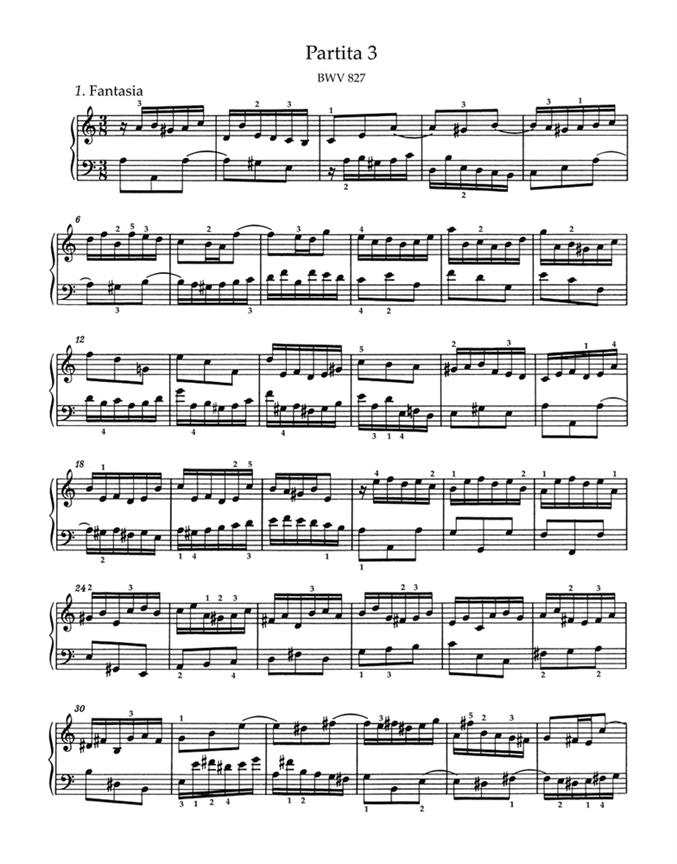 Partitas (6), (Klavieruebung Part 1) (BWV 825-830) (Urtext). Paperback edition (with fingering)