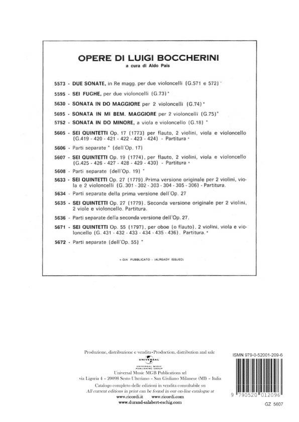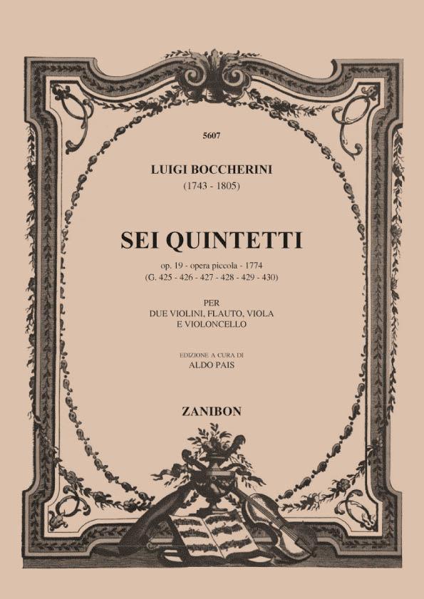 6 Quintetti (Op. 19 – Opera Piccola – 1774) – Partitura Per Due Violini, Flauto, Viola E Violoncello BOCCHERINI LUIGI