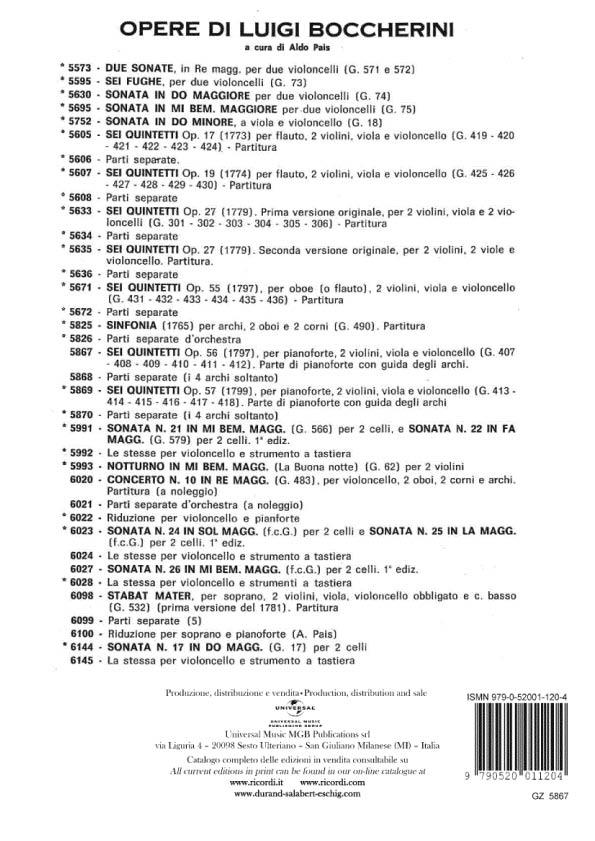 6 Quintetti (Op. 56 – Opera Grande – 1797) – Partitura Per Pianoforte, Due Violini, Viola E Violoncello BOCCHERINI LUIGI
