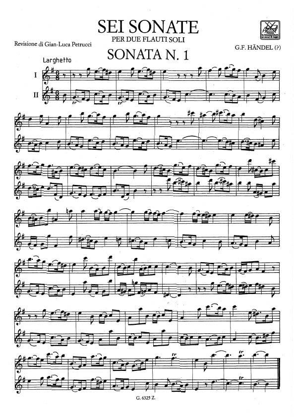 6 Sonate Per Due Flauti Soli (Petrucci) HAENDEL GEORG FRIEDRICH